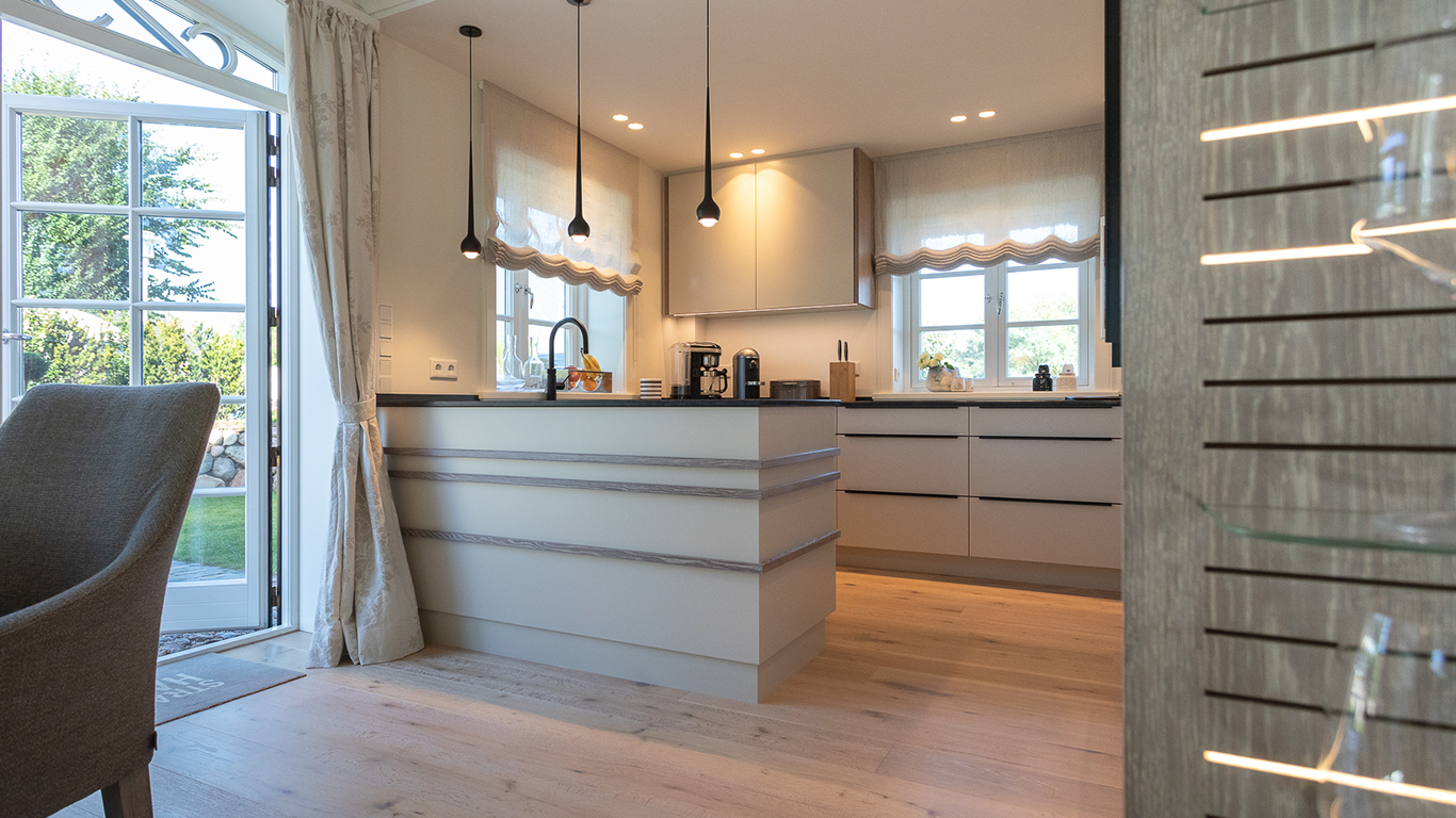 Qualität zeigt sich im Detail. In ruhigen Fronten. In passgenauen Einbauten. In sauberen Kanten, präzisen Fugen und stimmigen Materialübergängen. Handwerkliche Erfahrung und moderne Fertigung gehören bei uns zusammen. Damit Maßarbeit nicht nur gut aussieht, sondern langfristig funktioniert.