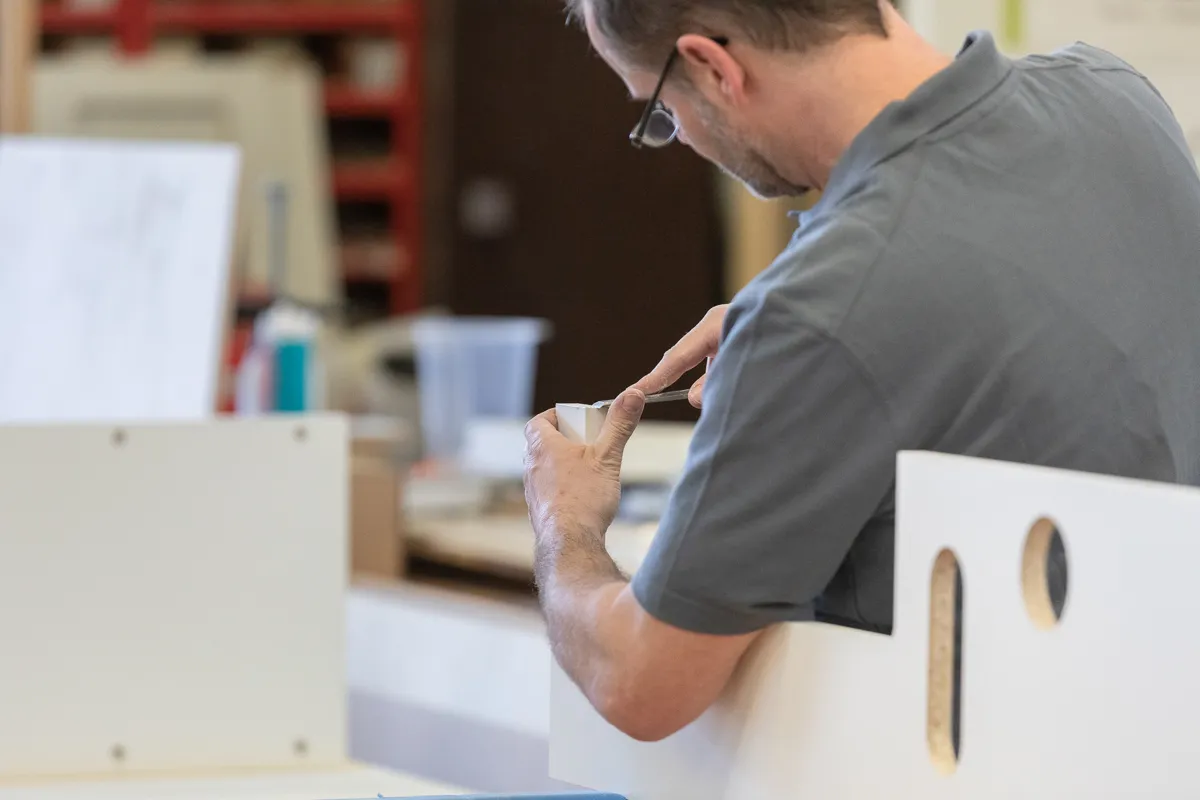 Brinkmann Innenausbau kann diese Gesamtaufgabe für Sie übernehmen. Wir denken mit, beraten, planen, fertigen und montieren fachgerecht. In enger Zusammenarbeit mit Ihnen. Und wenn es Richtung Fertigstellung geht, spürt man die Spannung. Denn der Moment, in dem alles zusammenkommt, ist für uns jedes Mal genauso besonders wie für unsere Kunden.